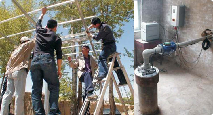 5.5KW太阳能热水器在尼日尔泵系统,灌溉和畜牧业 型号:SJ12- 18; 扬程范围:50米120米; 额定扬程:91米; 流量范围:3m3/h-18m3/h; 额定流量:12立方米/小时; 水泵电机功率:5.5KW; 太阳能电池板:6510Wp; 抽水逆变器和控制器:7.5KVA(纯正弦波的MPPT技术)。 应用:饮用水供水和灌溉。 经济效益:更换旧型柴油泵系统,可以节省燃料成本$30,000元 每一年,投资回收期约三年。 网站:Balleyara庄园,尼亚美,尼日尔。 完成时间:2009年3月 |